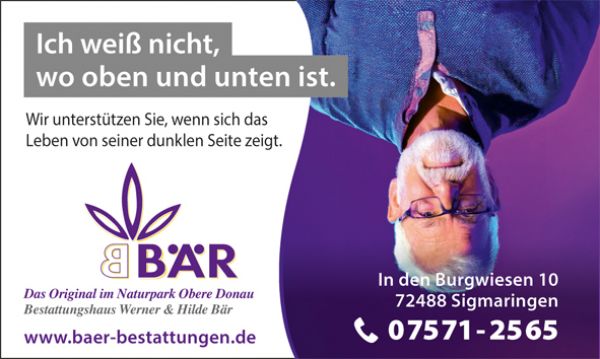 Unsere Anzeige im Stadtspiegel Sigmaringen und in den Amtsblättern Inzigkofen, Bingen, Sigmaringendorf, Gammertingen und Krauchenwies.