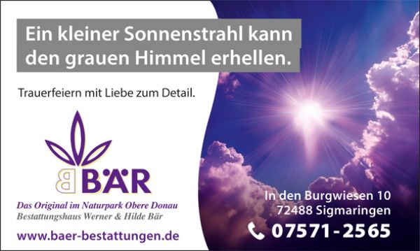 Gelungene Abschiede sind eminent wichtig - schon im Leben - und noch mehr angesichts der Endgültigkeit: Guter Abschied kann versöhnen, auf neue Weise verbinden, erlaubt es von Herzen „Danke“ zu sagen, und persönliche Achtung auszudrücken. Ein gelungener Abschied stiftet Frieden und unterstreicht die eigene Dankbarkeit - er macht frei. Dies gemeinsam mit Ihnen zu erreichen ist mein Ziel. Dafür stehen wir mit unserer Erfahrung und unserem ganzen Einsatz.